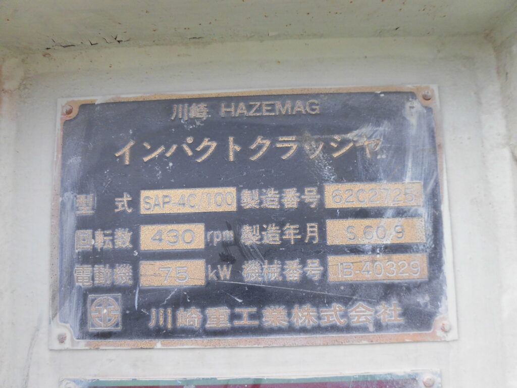 回転数:430RPM 粉砕粒度:35mm~15mm